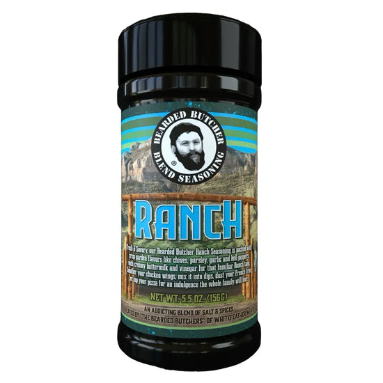 "Fresh & Savoury, our Bearded Butcher Ranch Seasoning is packed with crisp garden flavours like chives, parsley, garlic and bell peppers, with creamy buttermilk and vinegar for that familiar Ranch tang. Smother your chicken wings, mix it into dips, dust your French fries or top your pizza for an indulgence the whole family will love."