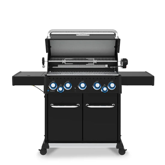 The Baron™ 590 Pro Shadow delivers power, versatility, and style for unforgettable backyard cookouts. With 780 sq. in. of total cooking space, including 570 sq. in. primary area and a stainless-steel warming rack, it is built to handle a crowd. Five stainless steel patented Dual-Tube™ burners deliver up to 45,000 BTU for even heat and precise control. The full coverage stainless steel Flav-R-Wave™ vaporizes drippings to maximize flavour, and reduce flare-ups. A 10,000 BTU side burner handles sides and sauces, while a 15,000 BTU rear rotisserie burner and kit enhances your grilling options. The stainless steel cooking grids provide superior heat retention, and the rust resistant cast aluminum cook box offers lasting durability. The Shadow’s sleek black styling is complemented by blue LED control knob lights for nighttime use. Includes a Limited Lifetime cook box warranty and 15-year warranty on parts and paint, ensuring years of reliable performance.