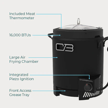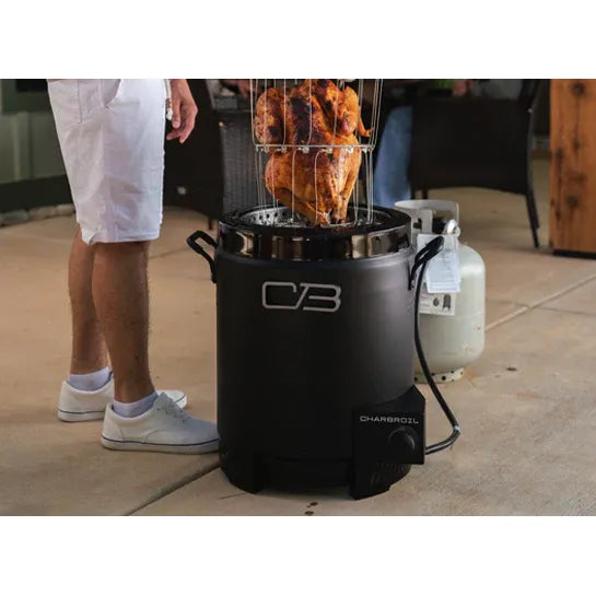 Get the fastest, easiest, and safest way to fry with The Big Easy® Outdoor Air Fryer. Powered by our patented cooking system, The Big Easy® delivers juicy-on-the-inside and crispy-on-the-outside results every time. Versatile cooking has never been simpler—whether it’s a 16-pound turkey or chicken, an 8-pound roast, or a 6-pound pork shoulder, The Big Easy® can handle it all. Cook large cuts of meat faster than a traditional oven without sacrificing flavor. With no need for oil, you can avoid extra calories and enjoy hassle-free clean-up. With handles for easy lifting, The Big Easy is not only great for your backyard, but also for camping and tailgating. The integrated piezo ignition ensures a quick and easy start with just a turn of the knob, and the front access grease tray makes cleaning up and collecting juices for a delicious gravy a breeze. The Big Easy® Outdoor Air Fryer: You name it, you can cook it.