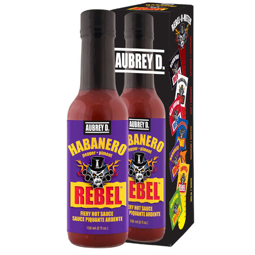 This Aubrey D. Rebel hot sauce is made with the HABANERO pepper and is a sauce for heat and taste lovers alike! Its recipe of fiery HABANERO peppers and other natural ingredients bring a vibrant heat intensity and mouth-watering tangy taste. Kick up sauces, grilled meats, dressings and dips.