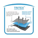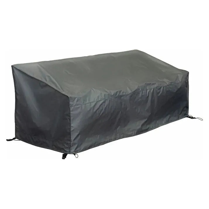 Luxe Furniture Company luxury quality solution dyed marine grade fabric covers with Tri-Tex technology provide three layers of protection for weather, water repellence and furniture scuff protection. The UV treated surface is fade resistant and provides long lasting protection from sun. Features include an adjustable elastic hem cord and tie down buckles plus a handy storage bag. The stylish charcoal grey colour blends with most decors and hides dirt well. Luxe Furniture Company covers are designed to withstand sun and rain for excellent seasonal protection. NOTE: While Luxe Furniture Company covers are highly water repellant, it is important to keep covers tented to prevent water pooling and possible water penetration. These covers will protect well in normal weather conditions, but excessive saturation from heavy rains and melting snow or minor leakage through thread seams is possible. Luxe Furniture Company covers will not freeze up in winter conditions but we do recommend usage of tarps to protect covers and furniture during winters.