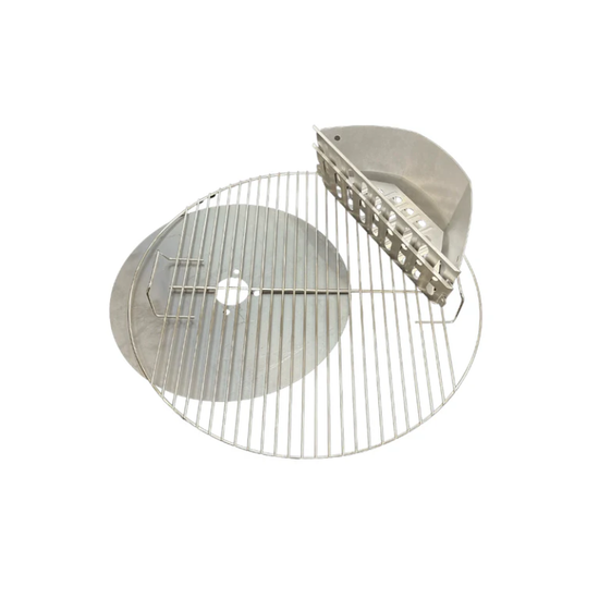 Upgrade your DrumBo with this original accessory that converts it into a kettle grill. Adding a top heat shield and an extra grill grate featuring small charcoal baskets allows you to sear steaks, burgers, chicken, fish, or vegetables quickly and easily. Raise the fire to the top of your DrumBo and grill just like you would on a gas barbecue. This retrofit is simple to install anytime after purchase and fits all DrumBo modelsĀ except the Legend. The bundle includes an upper heat shield, a 21.5" grill grate, and a pair of sear stack baskets for enhanced grilling performance.