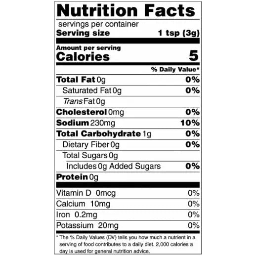 CONTAINS: Spices, Salt, Garlic, Vinegar Powder (Maltodextrin, White Distilled Vinegar, and Modified Food Starch), Onion, Lemon Peel, Paprika, and Silicon Dioxide (Less than 2% used for anti-caking).