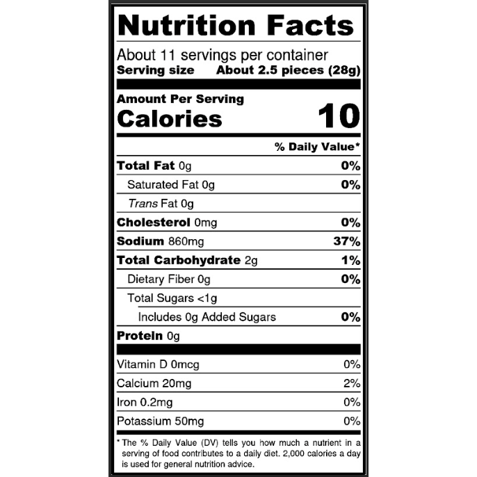 INGREDIENTS: Cucumbers, water, vinegar, jalapeno peppers, salt, dehydrated minced garlic, garlic, dill seed, red pepper, dill weed & calcium chloride