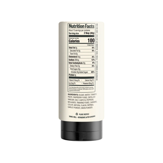 SUGAR, WATER, TOMATO PASTE, RASPBERRY PUREE, DISTILLED VINEGAR, SALT, CHIPOTLE PEPPERS, MOLASSES, TAMARIND PUREE, CARAMEL COLOR, NATURAL FLAVOR, PAPRIKA, GARLIC POWDER, ONION POWDER.