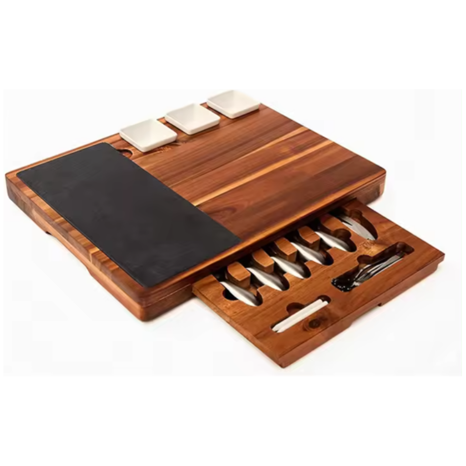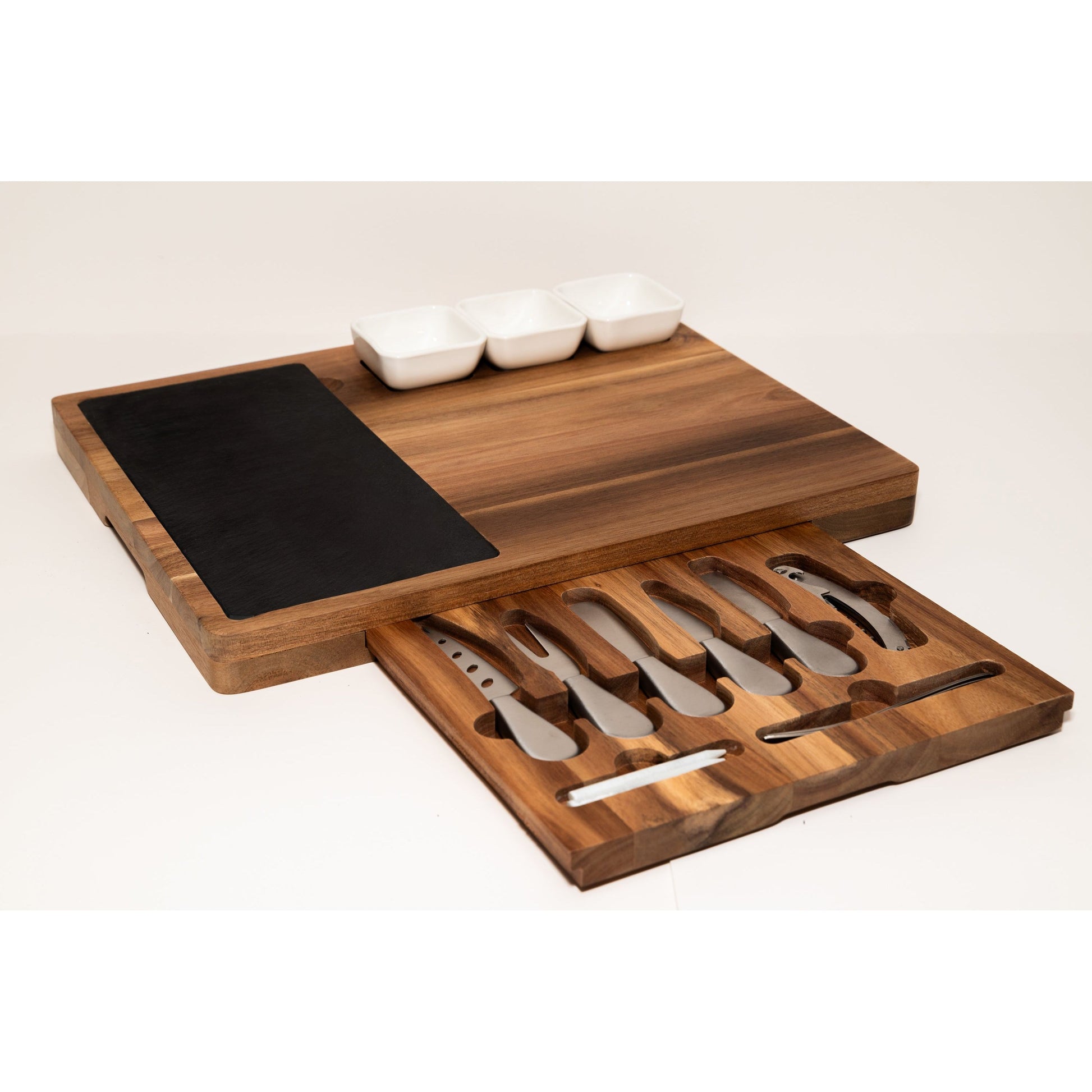 Luxe BBQ Company Customizable Charcuterie Board with Drawer & Knife Set
