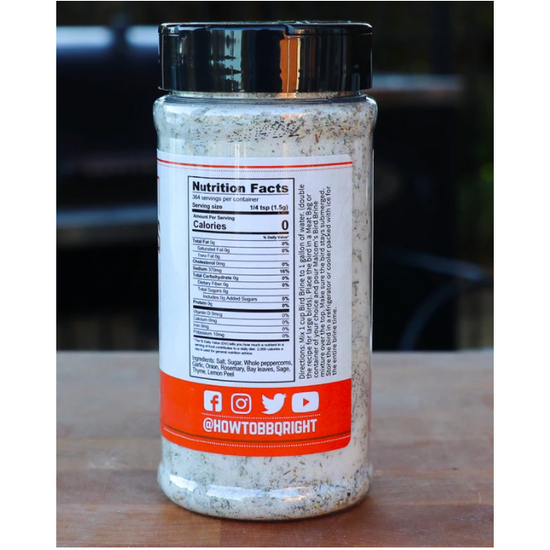 Mix 1 cup Bird Brine to 1 gallon of water. (double the recipe for large birds). Place the bird (turkey, chicken, goose, duck, etc...) in a Meat Bag or container of your choice and pour Malcom's Bird Brine mixture over the top. Make sure the bird stays submerged - weigh down with a plate if necessary. Store the bird in a refrigerator or cooler packed with ice for the entire brine time.