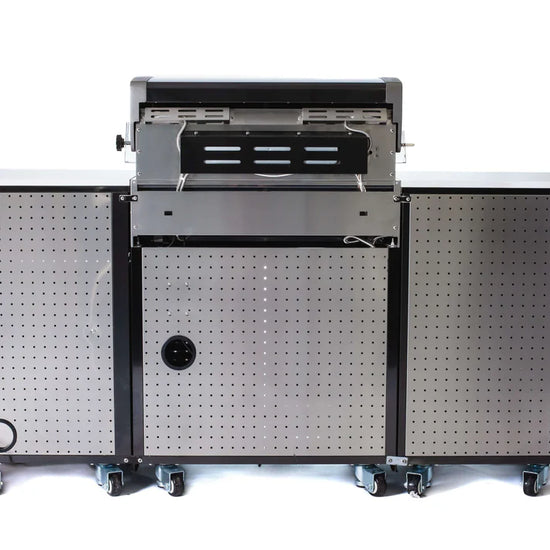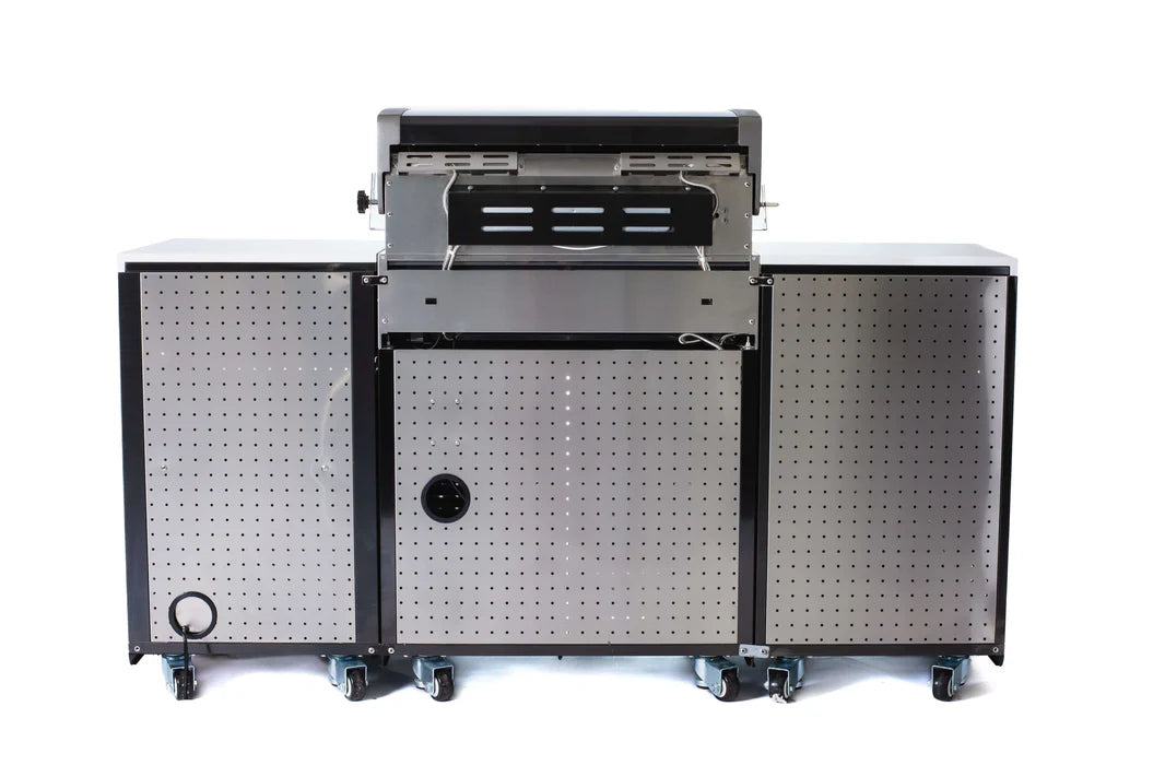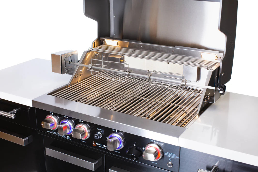 Despite its space-saving design, this island delivers full-sized performance. It boasts four powerful stainless steel burners and a ceramic infrared rear burner, totaling 63,000 BTUs. Whether utilizing the included heavy-duty rotisserie for a slow roast or searing on the 8mm stainless steel grates, you have professional control at your fingertips.