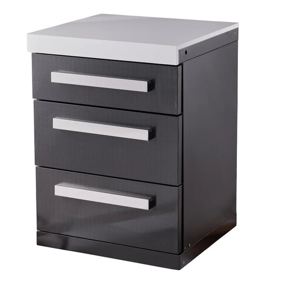 Expand your workspace and declutter your patio with the Mont Alpi Black Series 3-Drawer Cabinet. Designed to seamlessly integrate with your existing Mont Alpi Black Series island, this module provides essential additional counter space and three tiers of storage for your grilling tools, spices, and serving ware.