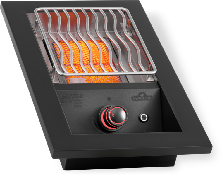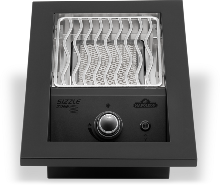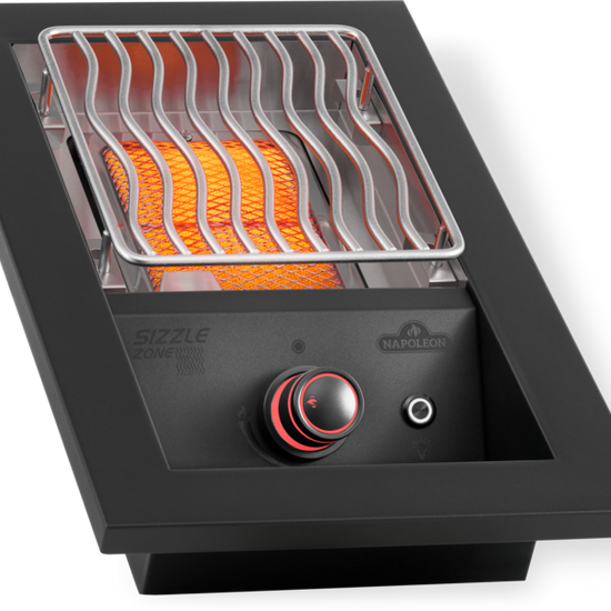 The Infrared SIZZLE ZONE™ can be used to produce the perfect sear on meat or used to create sides and sauces while the main grill is in use. This 10-inch drop-in Infrared SIZZLE ZONE™ burner sears succulent steaks to restaurant-quality perfection. Made from the same quality of marine-grade stainless steel as the 700 Series built-in grills, this drop-in side burner matches your custom outdoor kitchen. These burners provide stylish longevity and were built with ease of install in mind. Virtually maintenance-free 7.5-mm cooking grids deliver the iconic WAVE™ sear marks that tell your meal was cooked on a Napoleon. Ignite the burners one-handed using the JETFIRE™ instant ignition system. The ergonomic NIGHTLIGHT™ control knobs which provide ambiance and safety, glowing a glorious blue and changing to red when burners are in use.