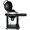 Charcoal enthusiasts can experience full-sized grilling with the compact and mobile Napoleon PRO Charcoal Kettle Grill with Cart. The folding, black, powder-coated cart features a folding side shelf that provides generous prep space. Cast iron grids can be set at three elevations, ideal for the way you want to BBQ. The grids are hinged for easy access, making it simple to add charcoal, refill water pans, and introduce smoking wood. When charcoal grilling, heat control through airflow is essential, our Smoke Stack Chimney protects your barbecue from gusts and rain. The Vortex heat management system improves convection within the grill for better searing and smoking as well as improved fuel efficiency. The stainless steel extension ring is rotisserie ready, with doors to cover the spit rod ports. Integrated doors for temperature probes ensure that your cook will go exactly to plan. Keep everything you need close at hand with modular storage, tool hooks, and integrated rotisserie holder.