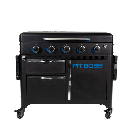 Innovation meets versatility with the Ultimate Griddle by Pit Boss® Grills. The Pit Boss® Ultimate 5-Burner Griddle perfectly blends power, portability and precision to create a one-of-a-kind grilling machine that delivers a Bigger. Hotter. Heavier. outdoor cooking experience unlike anything on the market today.