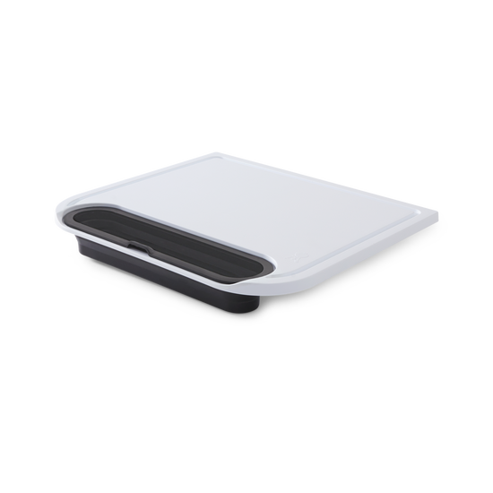 Easily season burgers, slice veggies or prep steaks at your grill. The Weber Cutting Board with Catch Bin is perfect for side tables, providing convenient prep space with less mess. The integrated groove prevents spills and a removable catch bin that collects chopped ingredients or food scraps.